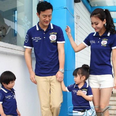 2014夏季親子裝學院徽章搭配撞色翻領休閑POLO衫家庭裝母
