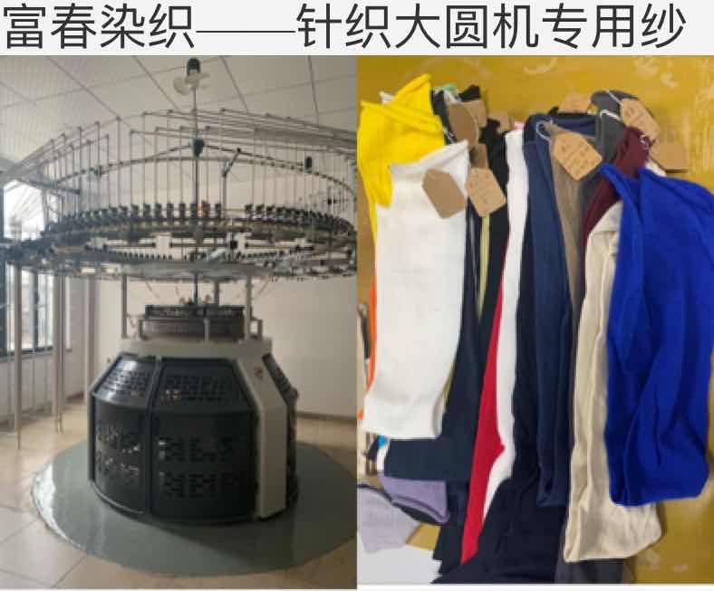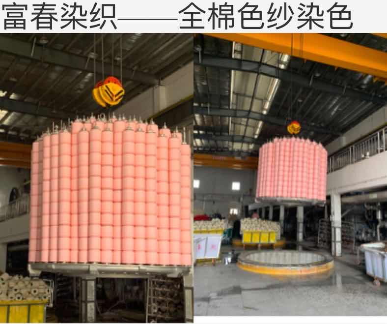 蕪湖富春染織股份有限公司專業從事純棉紗染色30多年,2016年銷售額更是高達15個億,經營全棉棉紗染色、絲光、燒毛、紗支齊全,并提供其棉紗摒線、燒毛、絲光服務。生產的全棉筒子色紗/絞紗染色、絲光棉具有色澤鮮艷、豐滿滑爽,適用于針織大圓機、橫機、襪機、箭桿織機以及梭織機,各項物化指標均符合環保要求,全棉色紗以富春三山色卡為基準,存儲近1000種現貨可供選用!絲光燒毛本白均為現貨!