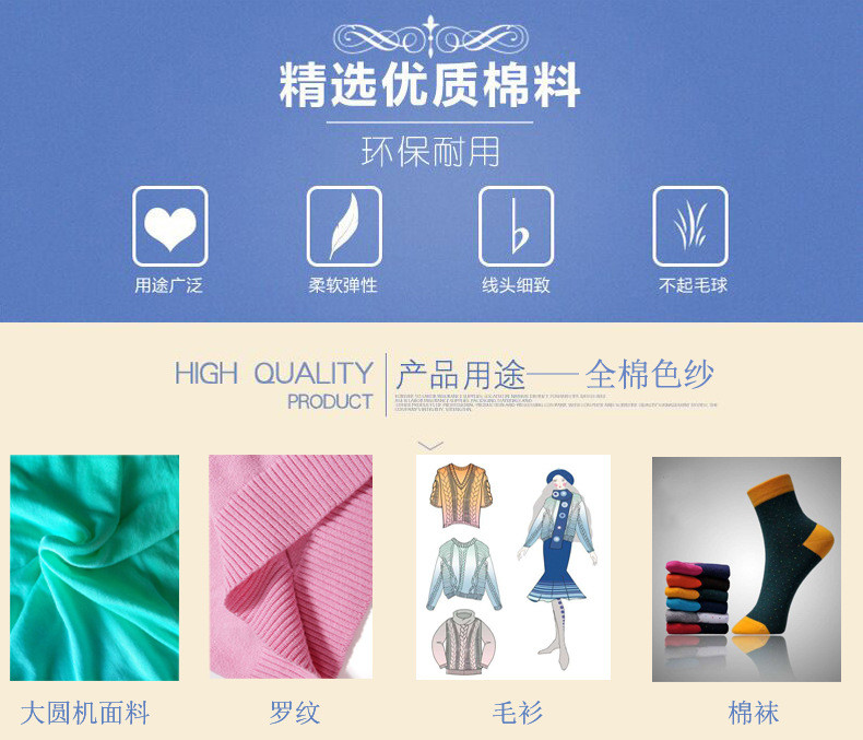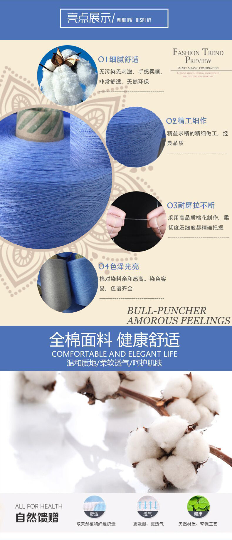 后的純棉紗線具有純棉紗線本身帶有的吸濕排汗舒適等特點外,還表現出色澤亮麗、挺闊、垂順等特點,不縮水,手感絲滑!具體