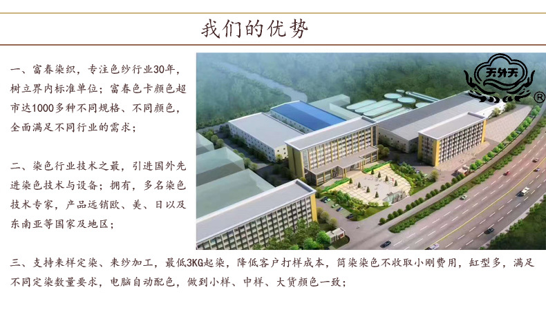 1、富春染織,專注色紗行業30年,樹立界內標準單位。