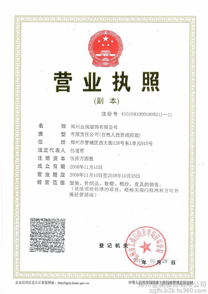 公 司 簡 介金瀾服飾有限公司是一家集研發(fā)、設(shè)計、生產(chǎn)、銷售和服務(wù)為一體的服裝企業(yè)。主要致力于職業(yè)裝,西服,制服,工裝,休閑裝……公司創(chuàng)始之初**本著“以質(zhì)量求生存”,“重服務(wù)為基礎(chǔ)”的出發(fā)點。于2000年成立鄭州金瀾服飾制衣廠,經(jīng)過8年的市場考驗,資源整合,結(jié)合外界市場的需求,從國內(nèi)知名企業(yè)高薪聘請設(shè)計師、打版師,加強了技術(shù)力量,得到廣大客戶一致認可。公司于2008年創(chuàng)建了“金瀾”品牌,立足河南,輻射全國,創(chuàng)建國內(nèi)**。公司根據(jù)客戶和市場需求的變化,制定了完善的管理制度,從產(chǎn)品開發(fā)、設(shè)計、生產(chǎn)、銷售整個過程都做到規(guī)范化、科學化、制度化;同時,本著不斷改革創(chuàng)新,以質(zhì)量求生存,重服務(wù)為基礎(chǔ),以信譽求發(fā)展的宗旨,追求卓越,在服裝行業(yè)取得了良好的業(yè)績和口碑。為了保證質(zhì)量,金瀾服飾不僅強調(diào)半成品、成品的檢驗重要性,而且在生產(chǎn)過程進行全方位,多手段的實時跟蹤與監(jiān)控。金瀾服飾全力打造服裝行業(yè)知名品牌,為您的生活增添色彩,讓“金瀾”**貼近您的生活。金瀾服飾倡導(dǎo)——實用性、**性金瀾服飾質(zhì)量方針——精益求精、追求**金瀾服飾服務(wù)理念——細節(jié)見證**金瀾服飾經(jīng)營理念——以人為本,科技創(chuàng)新