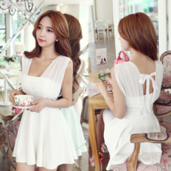 韓版新款雪紡拼接荷葉大擺性感夜店收腰無袖吊帶絲帶連衣裙外貿