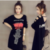 加肥加大碼女裝胖mm中長款連衣裙200斤胖妹妹印花鏤空露肩寬松t恤