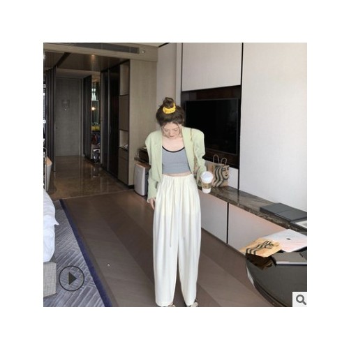 網紅時尚懶懶褲女夏季新品薄款休閑褲顯瘦bai搭寬松高腰闊腿褲子