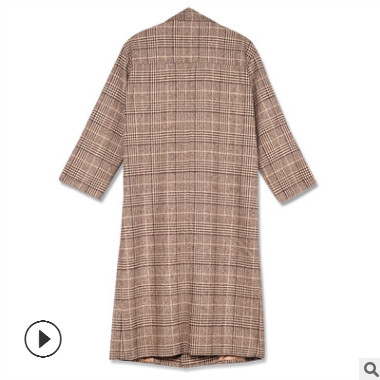 2019新款韓版復(fù)古格子毛呢外套女中長款秋冬氣質(zhì)千鳥格呢子大衣女