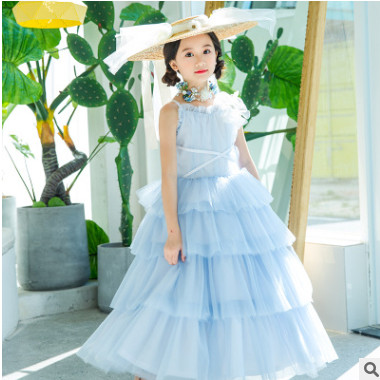 兒童走秀禮服攝影服裝T舞臺演出藍色公主裙一件代發代理定制服飾