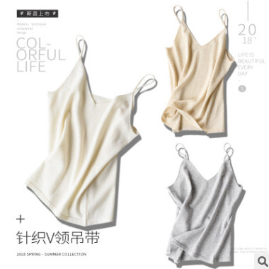 韓版修身顯瘦V領(lǐng)吊帶打底衫女緊身針織衫短款無袖內(nèi)搭外穿小背心