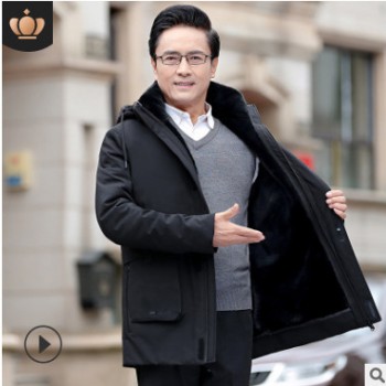 19爸爸冬裝外套加絨加厚中年男士棉衣中老年雙層可脫卸中長款棉襖