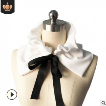 新款雪紡花邊系帶木耳邊假領(lǐng)子女圍脖領(lǐng)子系帶裝飾領(lǐng)韓版假領(lǐng)