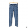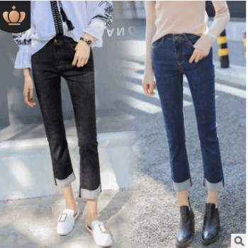 廠家直銷2017韓版高彈力大碼翻腳毛邊牛仔褲女 時尚直筒九分女褲