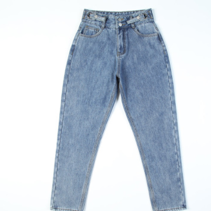 女士牛仔褲女直筒寬松淺色煙管褲2020年加絨顯瘦百搭九分闊腿褲子