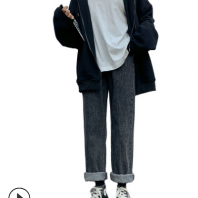 黑色直筒褲牛仔褲女秋冬2020年新款寬松高腰顯瘦百搭闊腿加絨褲子
