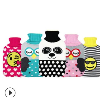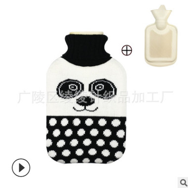 廠家直銷各種卡通造型熱水袋套裝 冬季保暖熱水袋 熊貓針織毛線套