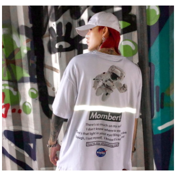NASA同款oversize落肩3m反光字母短袖 太空宇航員蝙蝠袖五分t恤男