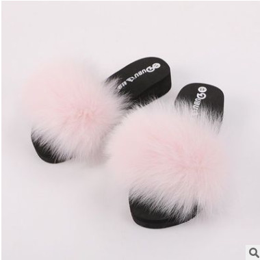 新款跨境皮草狐貍毛拖鞋女士平底一字拖舒適軟底防滑休閑鞋