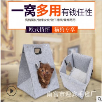 毛氈寵物窩 外出貓窩狗窩可折疊貓帳篷毛氈窩貓用品可手提貓窩