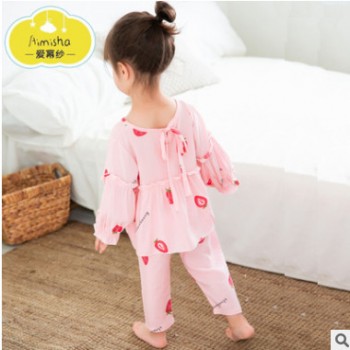 夏天薄款棉綢女童公主風女寶寶綿綢空調服兒童睡衣可愛家居服套裝