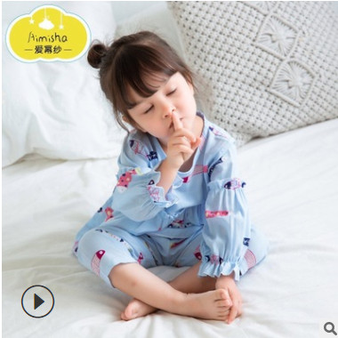 空調服女寶寶綿綢兒童睡衣夏季薄款棉綢女童公主風可愛家居服套裝