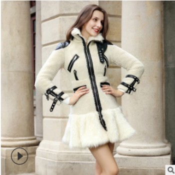 【2018秋】新款女裝時尚歐美米色翻領長袖修身簡約中長款大衣定制