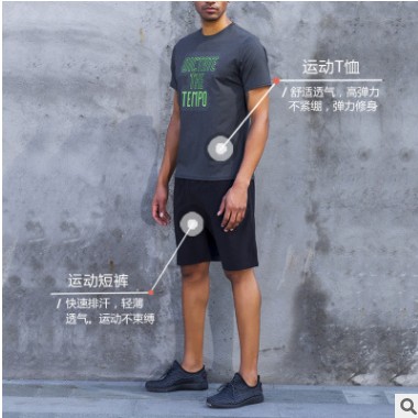 廠家直銷跑步運動套裝男夏 新款速干休閑健身衣套裝 短袖短褲套裝