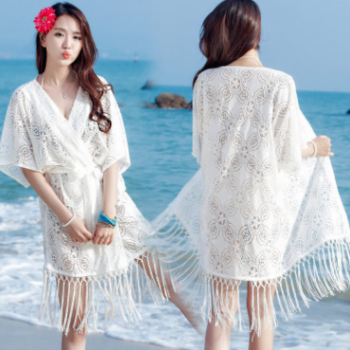 2018夏季新品女裝渡假海邊沙灘外罩中長薄款開衫蕾絲防曬衣服