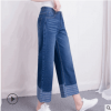 2018秋冬新款翻邊中腰寬松直筒牛仔褲女水洗收腰提臀闊腿九分褲潮