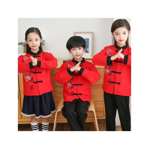 兒童年服套裝2021秋季新款小學生中國風校服紅色兩件套幼兒園園服