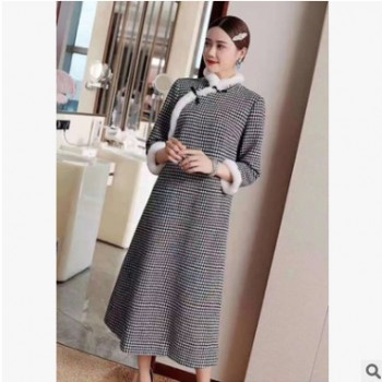 2019秋冬新款時尚潮流中式棉襖連衣裙