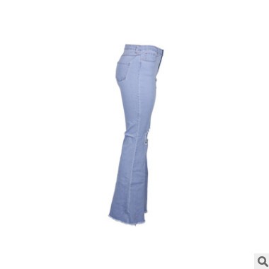 獨立站亞馬遜wish速賣通eBay爆款女裝純色破洞水洗喇叭牛仔褲現貨