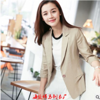 2018春職業小西女裝韓版學生棉麻純色女裝外套百搭修身森女新款女
