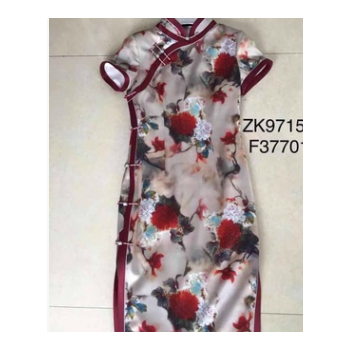2020新款冰絲絲綢雙層中長短袖立領(lǐng)修身手工訂扣旗袍