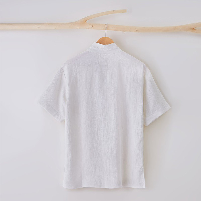 宸賢夏季新款休閑男襯衫亞麻男式襯衫青年唐裝男短袖上衣一件代發