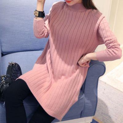 2018秋冬新款毛衣套頭針織衫女中長款韓版寬松半高領純色打底衫