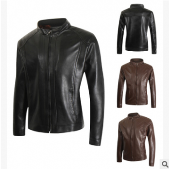 2019跨境秋季男士皮衣修身帥氣休閑立領(lǐng)PU短款皮夾克青年男裝外套