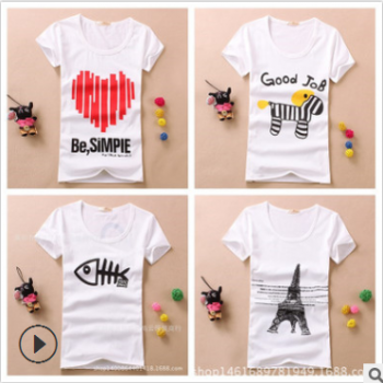 2020夏季新款t恤女式短袖時尚百搭圓領白色印花女裝短袖服裝批發
