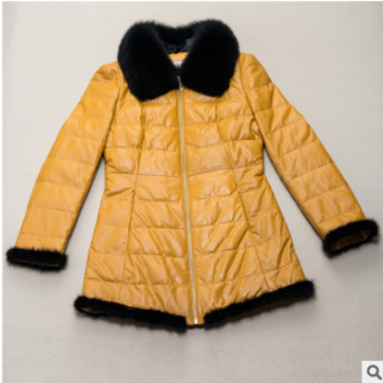 女式皮衣 2015冬季新款休閑中長款拼接水貂邊真皮綿羊皮皮衣 女