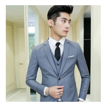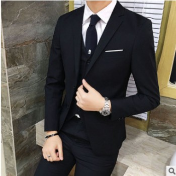 男式休閑西服套裝純色西裝套裝男韓版修身商務職業裝三件套工作服