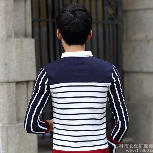秋冬裝長袖男士襯衫領 假兩件T恤衫休閑條紋保暖精超絨修身款