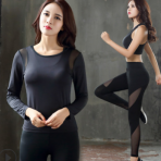 新款健身服 T恤三件套速干緊身透氣拼接運動套裝女跑步運動套裝