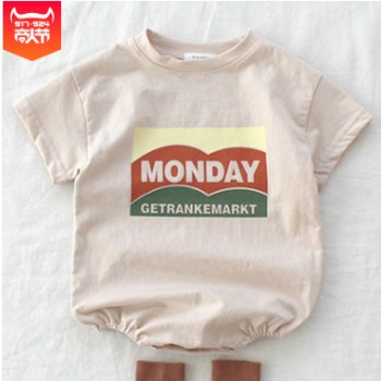 2019韓版嬰兒夏季簡單休閑短袖連體衣包屁T恤男女寶寶MONDAY爬服