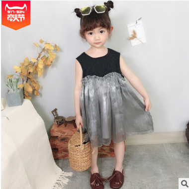 女童連衣裙女寶寶韓版洋氣紗裙兒童19夏裝新款無袖背心氣質拼接裙