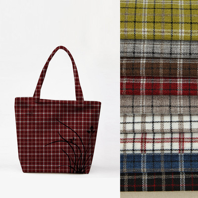 現(xiàn)貨批發(fā) 春夏沙發(fā)抱枕箱包面料 顏色多樣 新款700D格子印花麻布