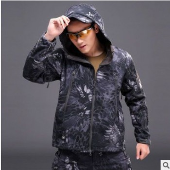 跨境貨源 軍鷹TAD軟殼沖鋒衣套裝防風透氣男大樹葉迷彩風衣褲子