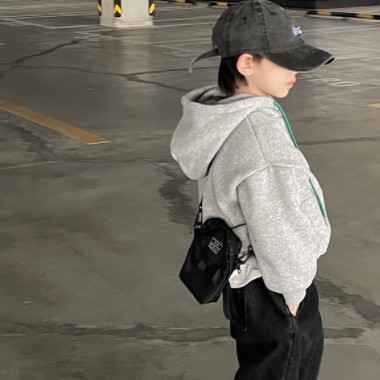 兒童加絨衛(wèi)衣2021冬季新款男童韓版連帽上衣寶寶套頭洋氣衣服日系