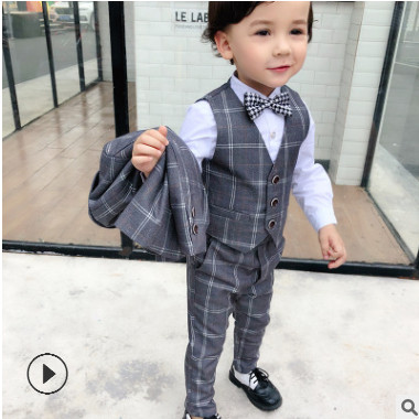 2018新款兒童 英倫西服三件套裝 小中大童歐美格子禮服代理加盟