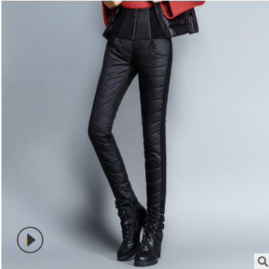羽絨褲女外穿顯瘦高腰加厚帶拉鏈修身款白鴨絨冬季保暖彈力棉褲女
