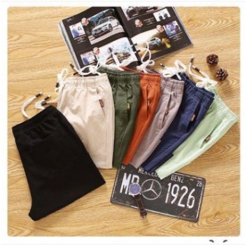 中大童學生休閑純棉棉麻短褲五分褲男土五分褲 初高中生褲子代發