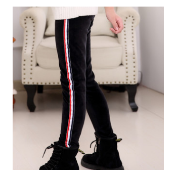 冬季女童打底褲加絨加厚中童兒童打底褲條紋織帶童褲外穿運動棉褲