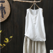 素衣巷夏季新款大碼女士背心麻棉無袖背心文藝范休閑外穿上衣