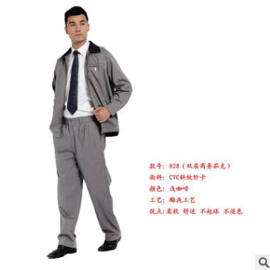 廠家直銷雙層商務茄克工作服套裝 男長袖耐磨 工作服 現貨